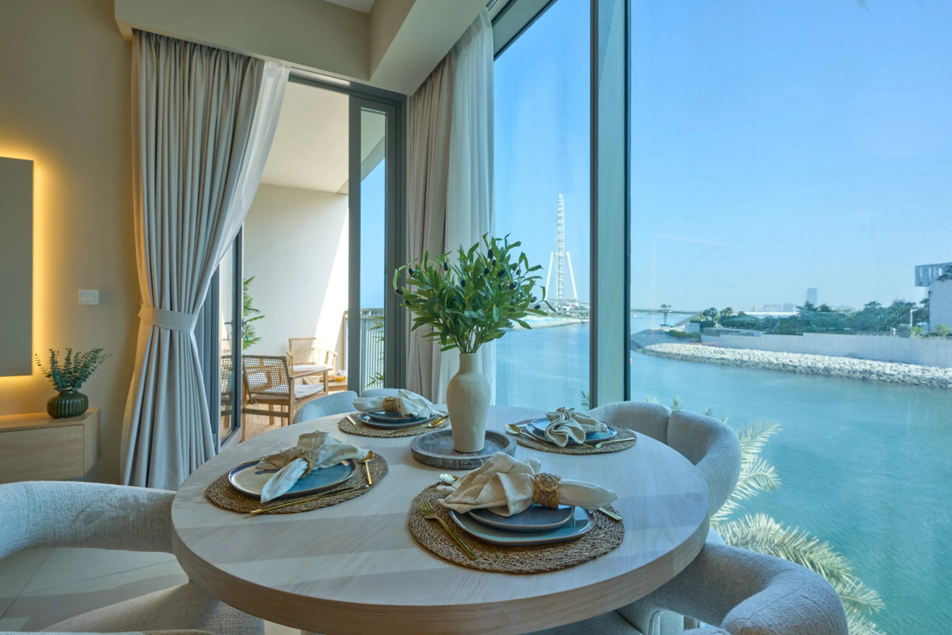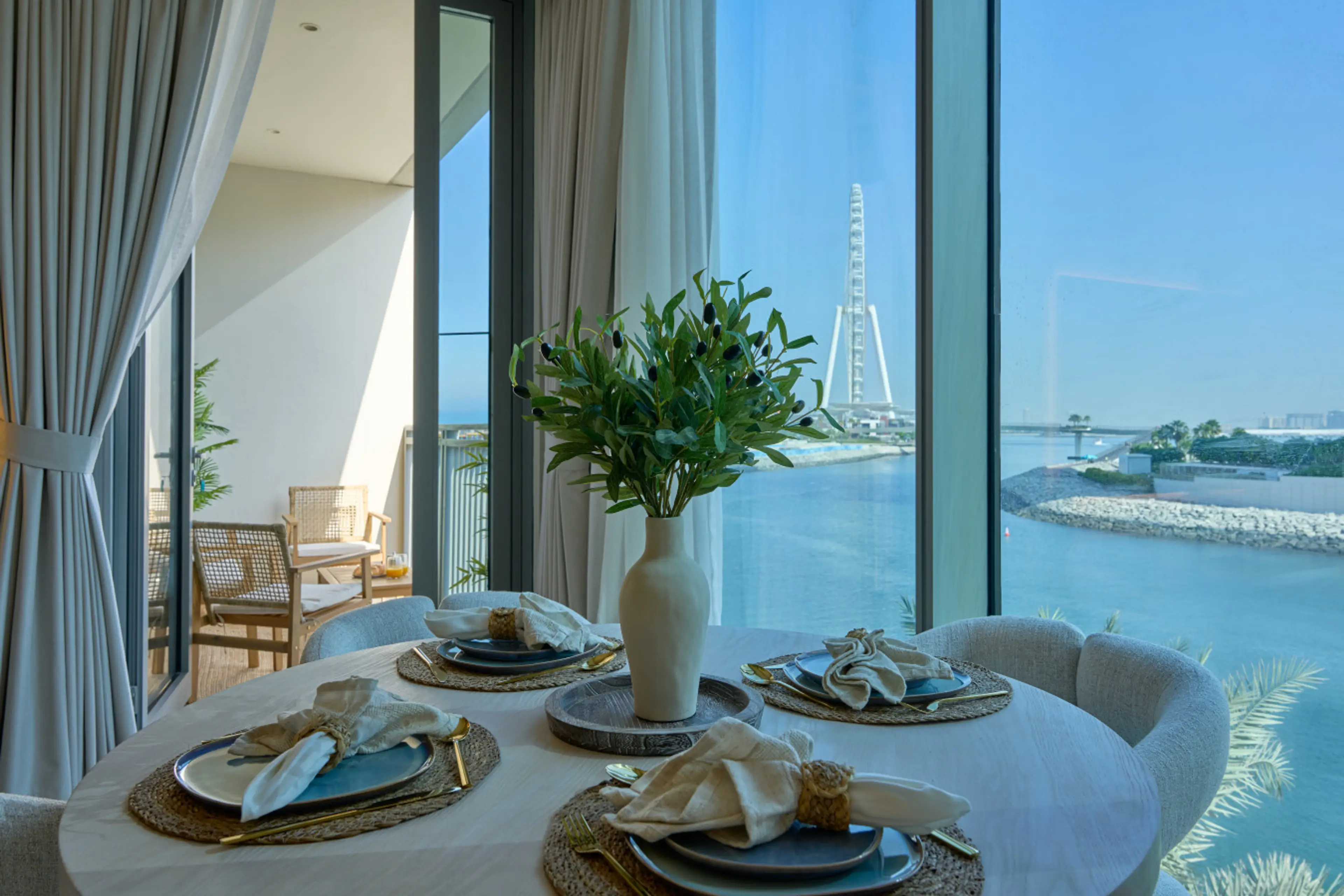 About this space โจ Wake up to sweeping sea views from your private balcony at Sarora 52|42, a calm and beautifully designed one-bedroom apartment perfectly positioned on the Dubai Marina waterfront. This coastal escape blends Japandi serenity and boho warmth, using soft blues, light woods, and natur...